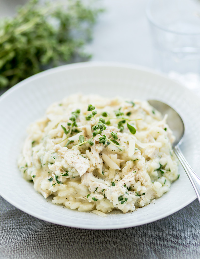 Statt dem Pecorino habe ich Parmesan verwendet, statt Estragon Majoran (weil der im Studio bei einem Shooting übrig geblieben ist und noch dazu hübsch aussieht) und das Trüffelöl habe ich ganz weggelassen. Trotzdem hat es wirklich gut geschmeckt und die Methode, Hühnerfleisch zu kochen, kannte ich noch gar nicht - also wieder was gelernt.