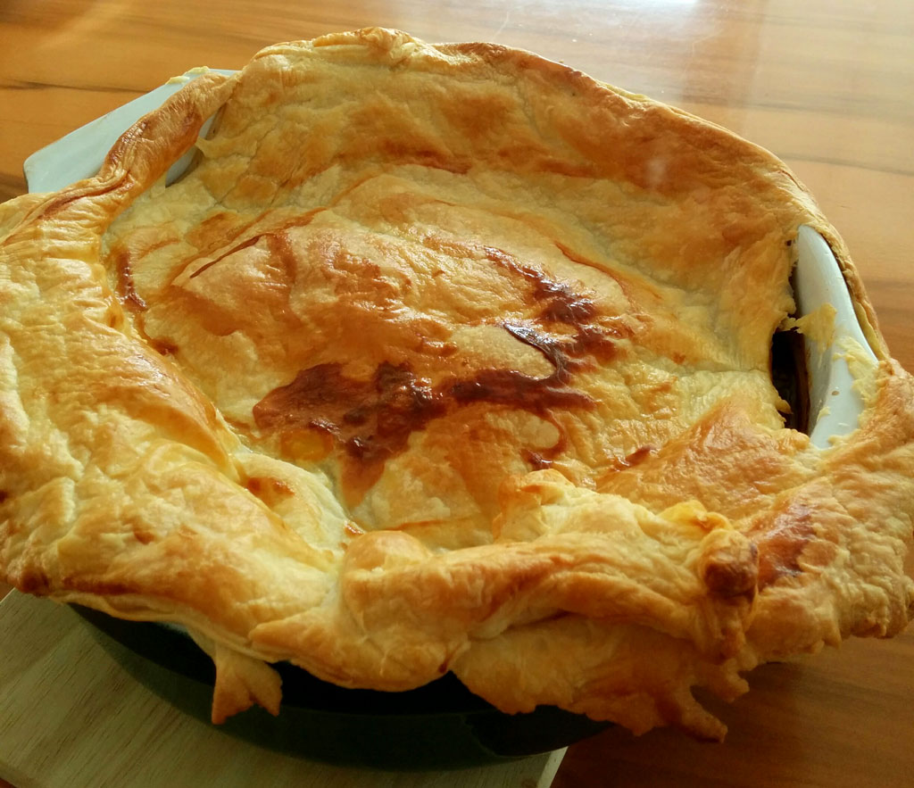 Bei Bobbies hab ich mir u.a. die Brown Sauce und das Guiness geholt und dann am letzten Tag in 2015 für meine Familie gekocht. Ich hab natürlich versucht rechtzeitig zu kochen zu beginnen weil die Zubereitung ja doch etwas länger dauert, es haben aber alle ganz geduldig und neugierig darauf gewartet dass es fertig ist. Irgendwie hat das Bier bzw. der Geruch der Speise allgemein das Interesse der Anderen geweckt. Ich hab diesmal wieder alle Zutaten gekauft und die Speise bis zu Ende gekocht, wobei ich mich auch Frage ob es, ausser optisch, irgendeinen Effekt hat das mit dem Blätterteig zu überbacken.